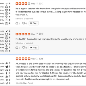 Prior to the redesign of ratemyteachers.com in 2019, student reviews were accessible on their website. because they are no longer available for public view, I have provided screenshots below of SOME of those anonymous student reviews.